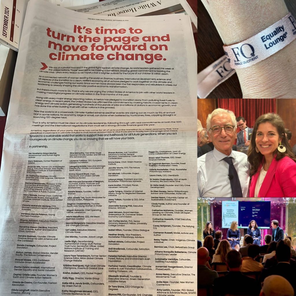 80 % des personnes déplacées et touchées par le changement climatique sont des femmes.Seuls 9 des 133 orateurs de l’Assemblée générale des Nations unies étaient des femmes.Mais ce qui m’a frappée à New York, c’est l’esprit collectif et la détermination des femmes qui mènent le changement.Le fait de faire partie de nombreuses tribus de femmes, avec une telle sororité, me donne de l’espoir dans notre capacité collective à faire bouger les choses.